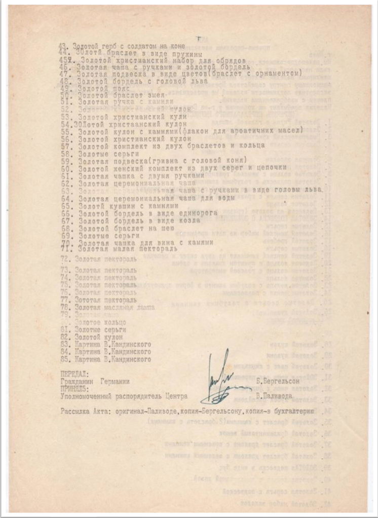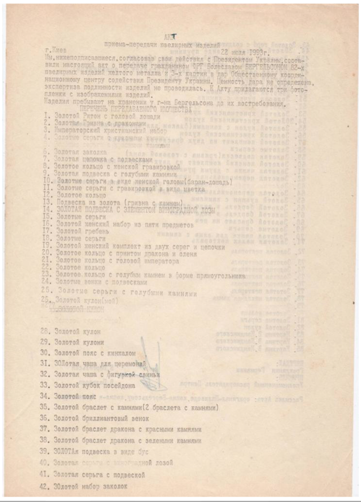Акт прийому-передачі колекції від Б. Бергельсона - Центру