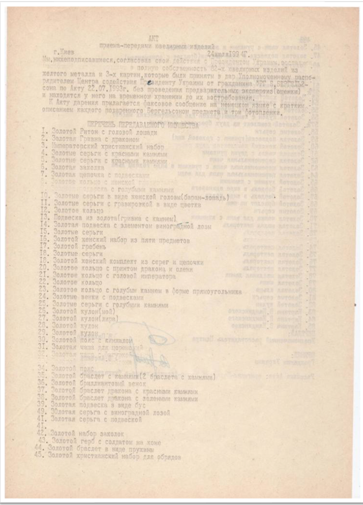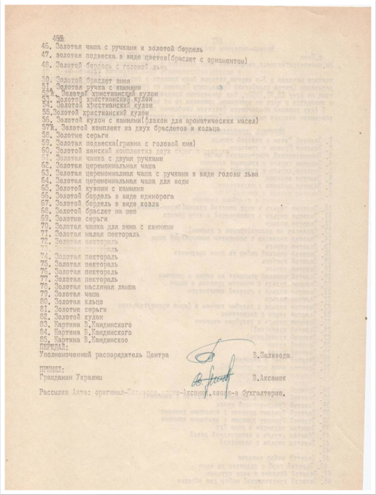 Акт прийому-передачі колекції від Центру - В. Аксанюку